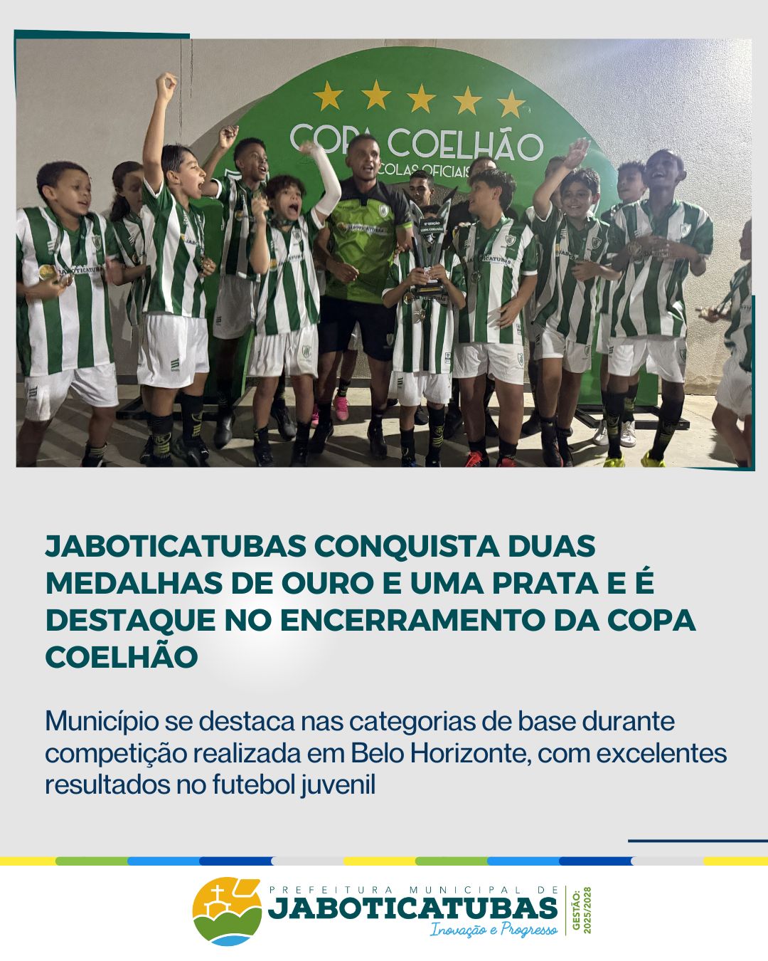 Jaboticatubas foi destaque no encerramento da Copa Coelhão, realizado no último dia 14 de março, em Belo Horizonte. A competição, organizada pelo América em parceria com escolinhas de futebol, reuniu jovens atletas de diversas regiões e promoveu a integração e o desenvolvimento do esporte de base.